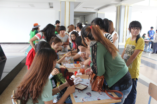 6月28日下午,国际学院在教学楼大厅组织了大型的中韩交流活动,其中包括韩国传统脸部彩绘、T恤彩绘、气球折叠以及大型的赠送会。来自各个学院的学生积极参加,并在赠送会上得到了全北大学带来的物品,整个现场气氛热烈。宣传了学校外事交流的成果,扩大了学校在外事交流方面的社会影响力。包头电视台经济生活频道鹿城600秒的记者进行跟踪报道。