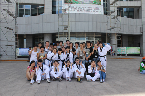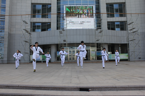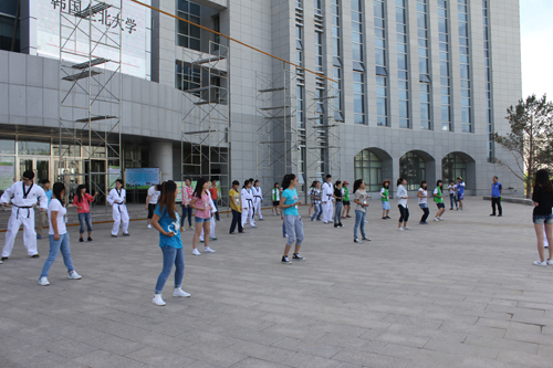 6月29日上午,国际学院在图书馆前广场开展了跆拳道公开课。首先由全北大学学生为我校学生讲授跆拳道知识,随后进行动作示范,吸引了大批学生围观并积极踊跃参与,激发了我校学生对韩国跆拳道的兴趣。