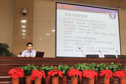 随后,各国代表与我校对来自国际学院、艺术设计学院、经济管理学院的150多名学生进行了深入的交流沟通,向学生们详细介绍了赴各个国家留学的优势及条件,并对学生提出的问题都进行了一一解答,说明会在轻松愉快的氛围中结束。