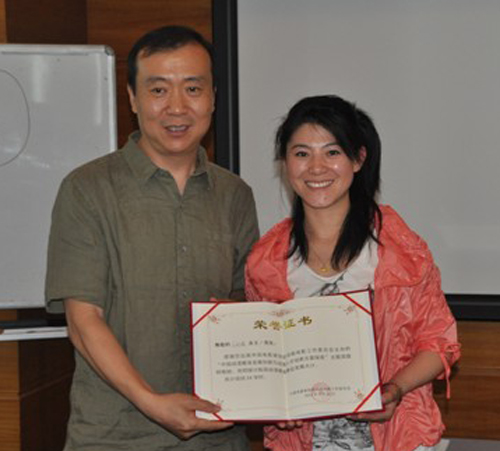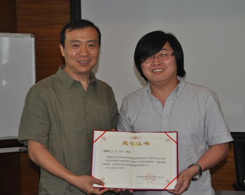 动漫专家孙立军院长为我院教师王丽媛颁发结业证书