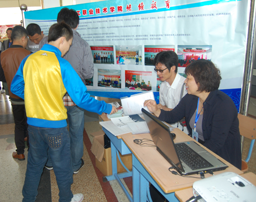 在这次双选会上,我们面向前来参加招聘的一百五十多家企业和应往届毕业生,针对继续教育主要从以下几个方面进行了宣传:第一、面向从业人员,以及有创业、择业、转岗需求人员和就业困难、失业人员开展相应的职业教育培训,使他们在职业道德、文化知识、专业技术和实践能力等方面满足相应岗位的要求。第二、面向有接受中等或高等教育意愿的社会成员开展相应的学历继续教育。第三、面向各类社会成员开展形式多样的道德规范、科技文化、文明生活、休闲文化和健康教育,满足人们日益增长的精神文化生活和幸福生活的需求。第四、面向行业企业开展高技能、新技术培训、职业技能鉴定和在职人员学历提高,支持企业在岗人员的技能更新。联合各级地方政府,开展农牧民和再就业人员的技能培训工作,面向新农村建设,开展农业技术推广和农村技术人员继续教育培训。第五、搭建产学研结合的技术推广服务平台,面向企业开展技术服务,推动企业技术进步,为产业升级提供智力支持。引导和激励教师深入企业,参与企业技术改造、技术攻关,促进科技成果转化,实现互利共赢。