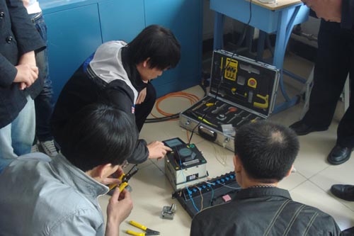 首先,团队负责人韩耀坤老师和学生就第一阶段的教学情况和学习情况及心得分别作了详细汇报。随后,考核组对学生进行了分组考核,考核内容包括完成复杂永久链路和模块端接、光纤的分类及熔接技术、常用线槽和设备安装。考核过程中,学生在实操环节能按照各项要求完成考核内容,对理论知识掌握较好。最后,副院长侯建平指出:从本次考核的情况看,电子信息工程系新的人才培养模式转型是成功的,本次考核学生能熟练操作考核项目的各项技能,考核效果较好。同时侯院长也要求在教学过程中将职业素养的培养融入在项目技能训练中。