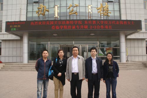 贝尔法斯特学院是英国北爱尔兰最大的优秀政府公立学院,拥有22所联盟学校;英国东伦敦大学也是一所公立学校,该校商科和法学专业在英国综合排名前4,双方探讨了学院与以上两所学校的专升硕合作模式。除此之外,韩燕女士还与意大利、德国、俄罗斯、西班牙、法国、泰国、韩国等国高校有合作项目,国际教育交流中心吕主任就双方感兴趣的项目进行了深入洽谈。最后,双方就合作办学、校际互访、培训交流等方面达成初步合作意向。双方表示:力争早日签订实质性合作协议,实现合作,共同发展。