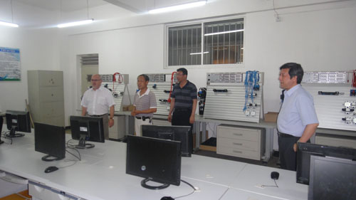 6月16日下午,德国Festo专家在机电工程系闫永平主任的陪同下参观了机电工程系机电一体化技术培训中心八个Festo实训室。在参观过程中,闫永平主任就这八个实训室的使用情况进行了详细介绍。纳格尔先生非常细心地看了每一台设备,询问使用情况,就设备在使用中存在的问题,提出了解决的办法。并且亲自用手检查了实训设备和工作台表面,甚至是实训台底面,发现没有一丝灰尘,对我们的日常管理非常满意。同时对机电工程系这一教学团队能够这么迅速的掌握和使用这些设备给出了很高的评价。