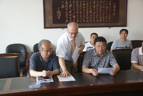 纳格尔先生向学院领导递交国外院校合作意向书