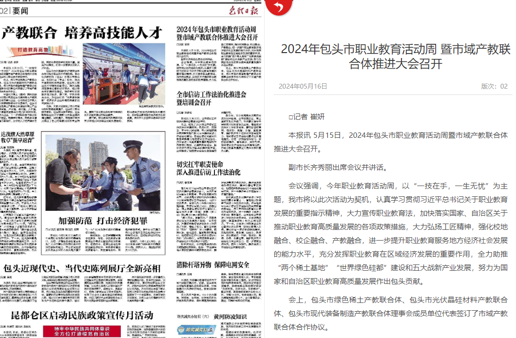 本报讯 5月15日,2024年包头市职业教育活动周暨市域产教联合体推进大会召开。