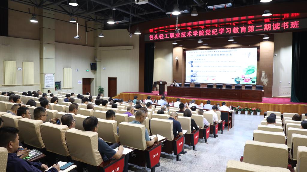 6月11日上午,包头轻工职业技术学院举行党纪学习教育第二期读书班暨党委理论学习中心组第九次学习(扩大),邀请市纪委监委宣传部部长、四级高级监察官徐丽敏作专题辅导,学院党委书记邵文祥主持并讲话。