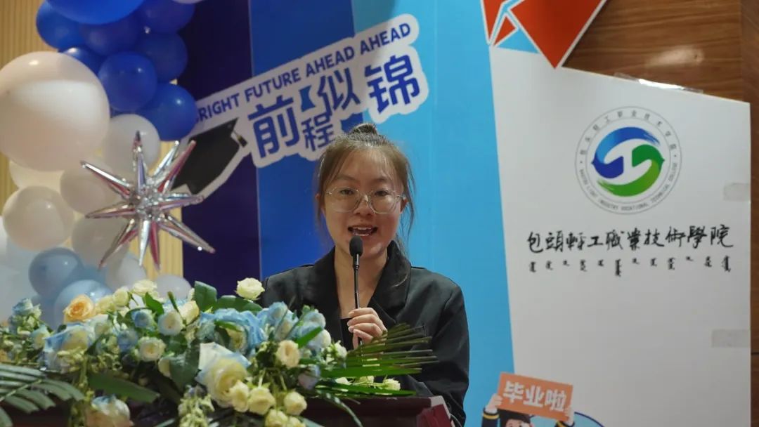 在校生代表,农牧工程系高静茹同学表达了对优秀学长学姐的敬爱之情,感谢他们给了低年级“小白”无微不至的关爱和帮助。她决心以2024优秀毕业生为榜样,刻苦学习,不忘初心,砥砺前行。她深情祝愿毕业生,即使毕业也不说再见,我们的心永远在一起。