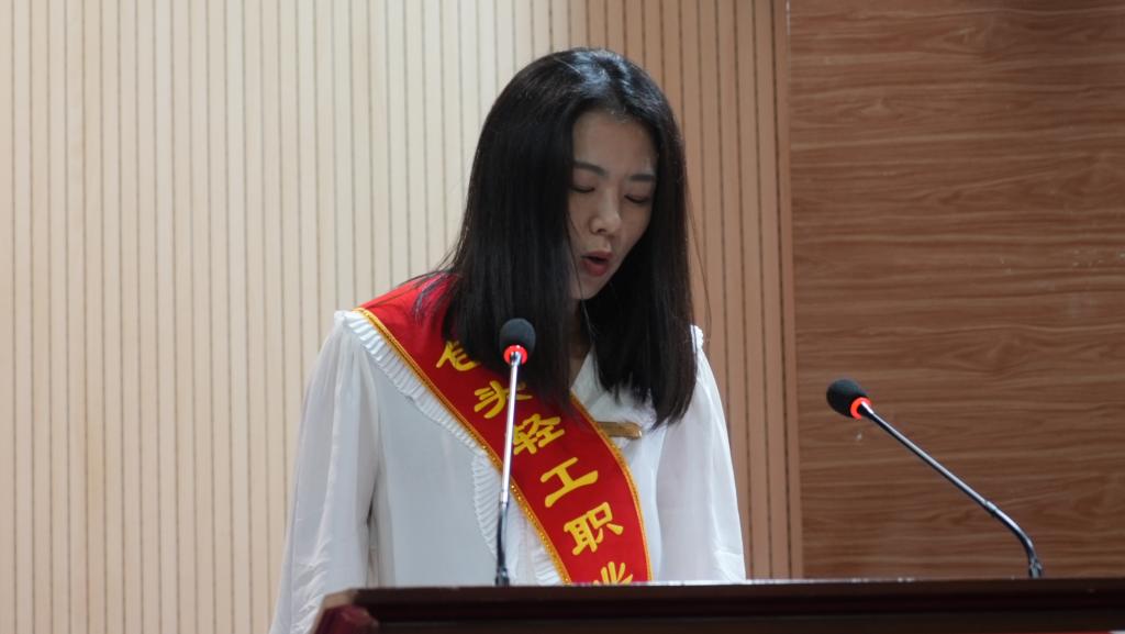 随后,学院2024年新入职教师进行庄严宣誓,高举的右拳坚定有力,铮铮誓言是每一位新教师的自我期许,更是对教育事业的庄严承诺与决心。宣誓过后,新入职教师进行拜师仪式。