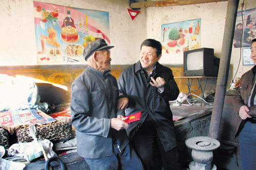 输血”,为固阳摆脱贫困找外援。市领导调研时,他把考察点定在最穷的二社村,不遮不掩地让领导了解固阳的情况。在领导表态支持后,他又一趟一趟去反复沟通,争取正式文件出台。功夫不负有心人,2007年12月15日,中共包头市委十届三次全委会议上做出举全市之力帮扶固阳”的决定。